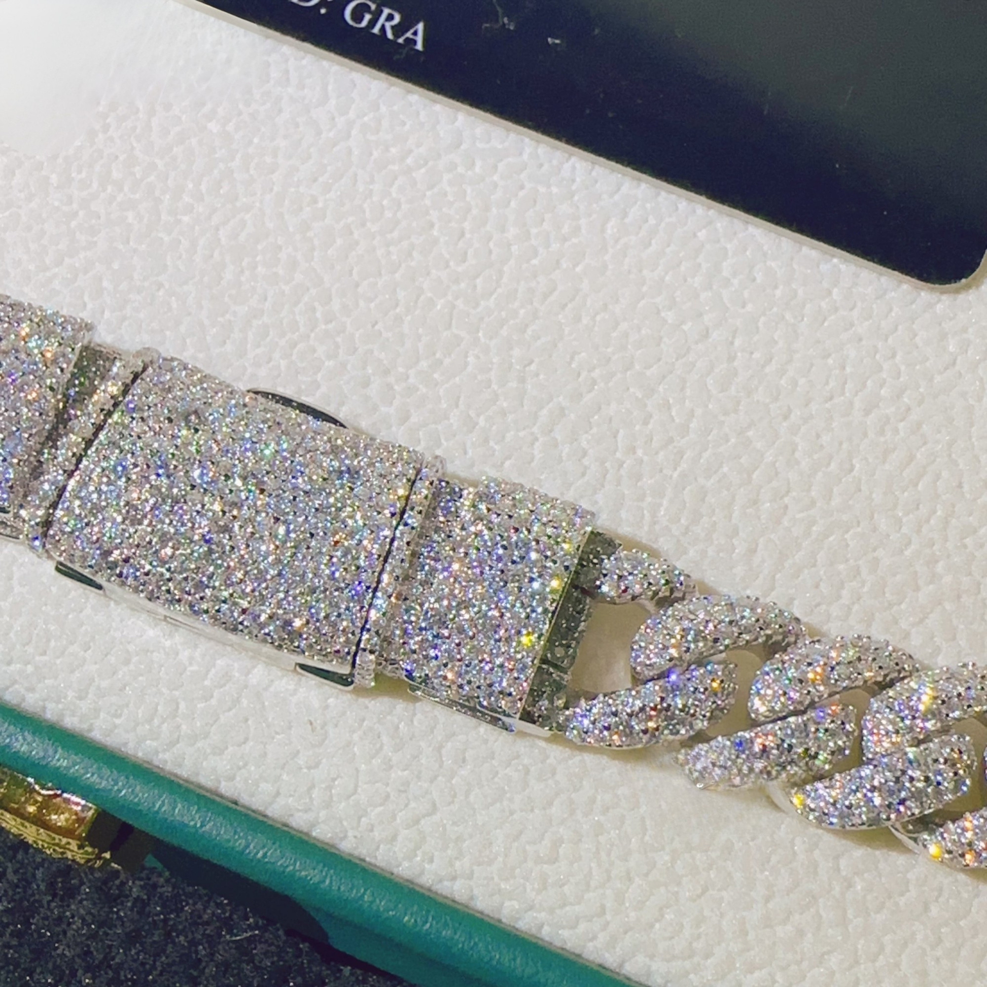 VVS D Color Stones: Featuring high-quality VVS diamonds with D color grading, these stones offer exceptional clarity and brilliance that rivals natural diamonds. Each stone is carefully set to maximize sparkle and create an authentic iced-out appearance that catches the light beautifully from every angle.