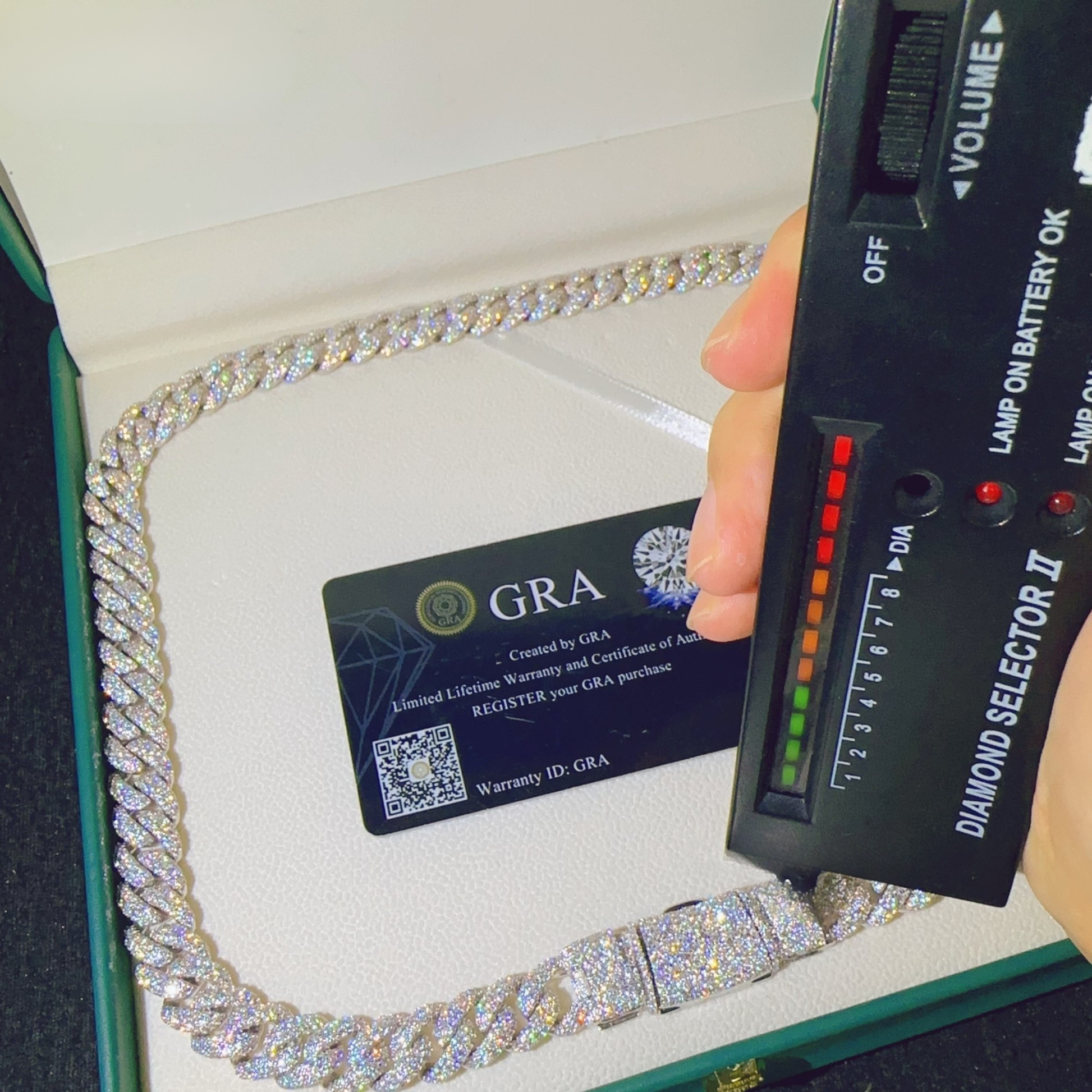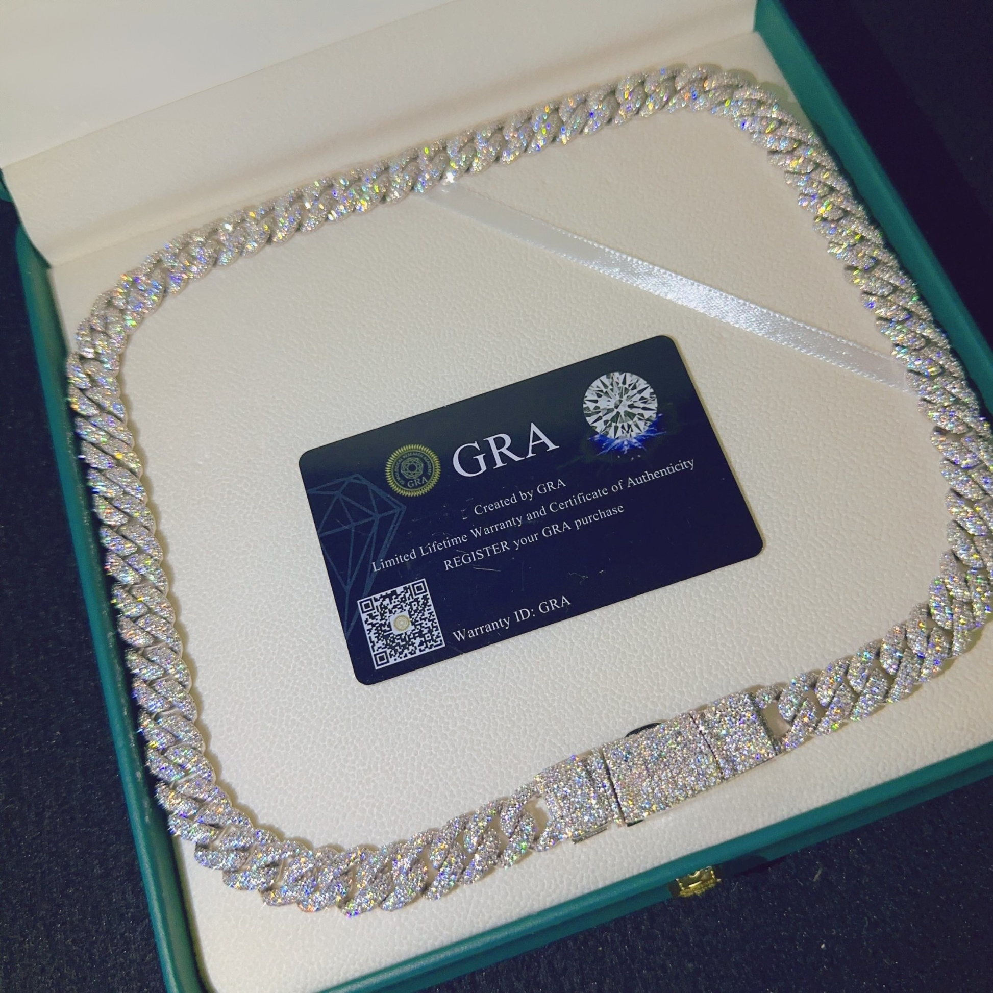 Premium 12MM Cuban Chain with VVS Diamonds & Sterling Silver