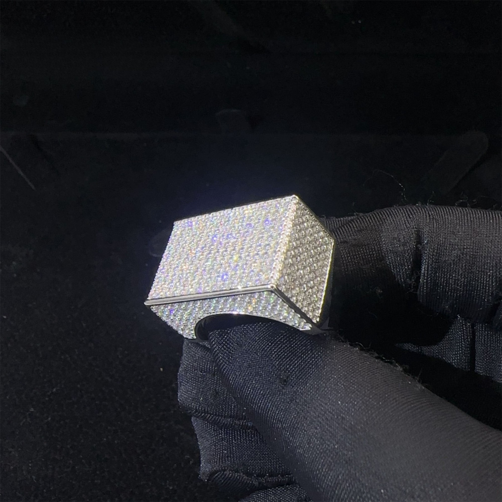 Contemporary Square Design: The bold square arrangement creates a modern, masculine aesthetic perfect for hip hop fashion. The geometric pattern captures light from multiple angles for enhanced brilliance and visual impact.