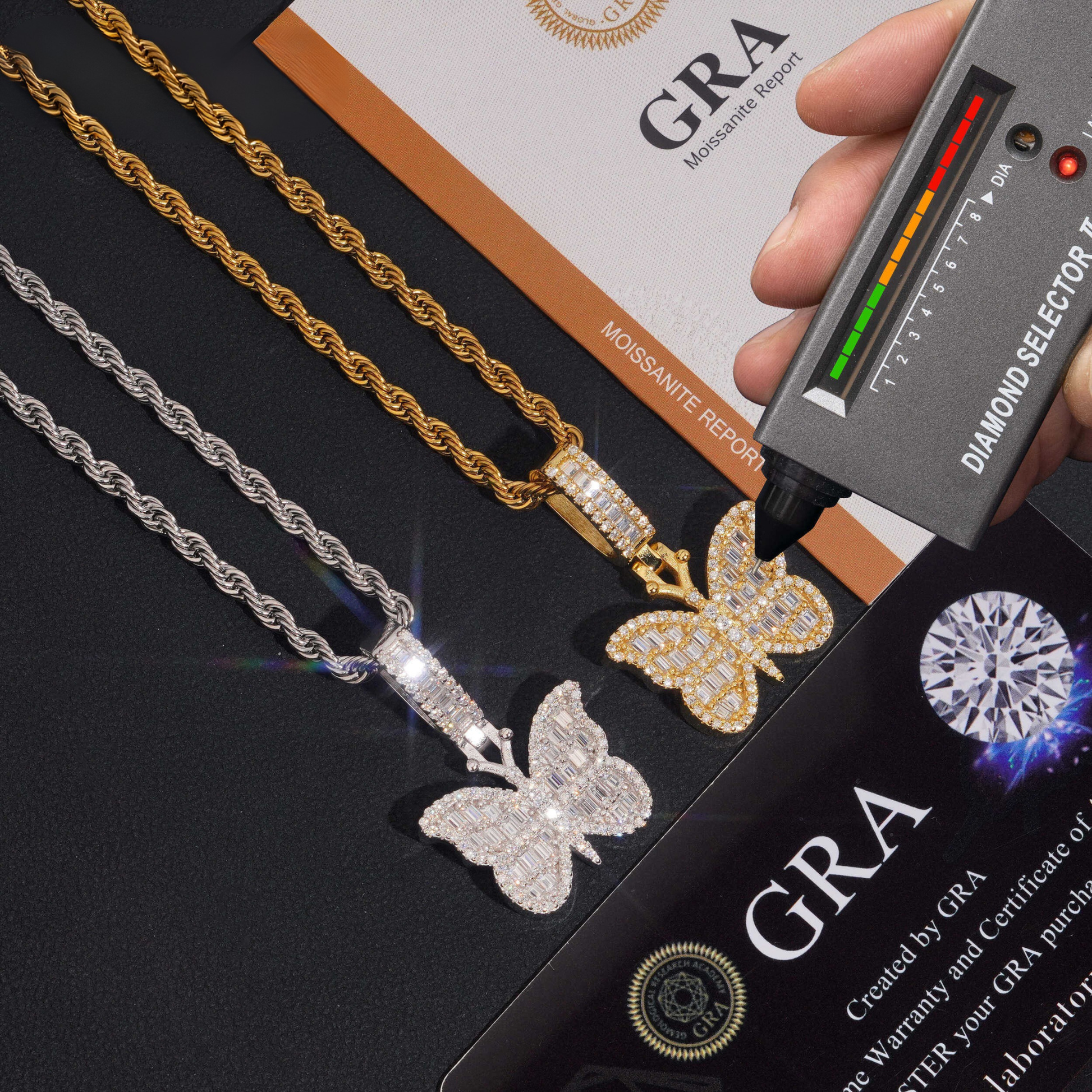 Discover our exquisite 925 Sterling Silver Butterfly Pendant, a stunning piece of hip hop jewelry that combines luxury with affordability. Featuring a brilliant stone that passes diamond testers, this pendant offers exceptional sparkle and durability. Perfect for both men and women, it's designed to make a bold fashion statement while maintaining timeless elegance.